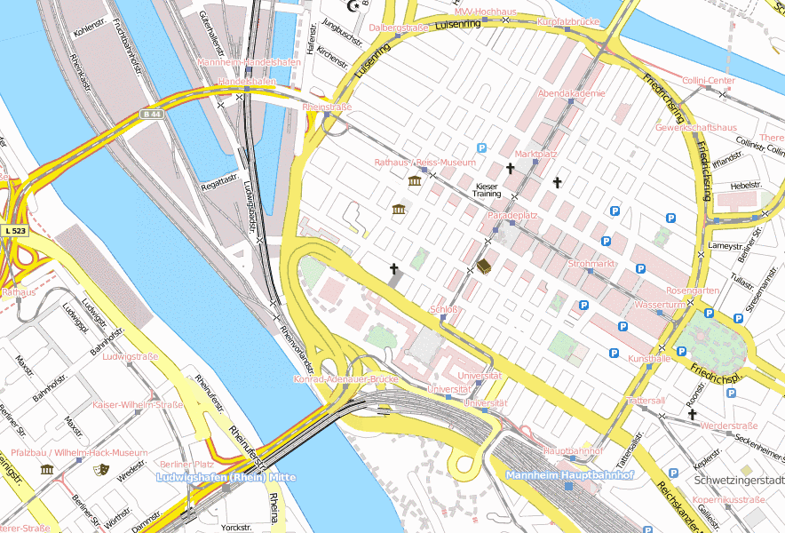 Durch den praktischen Jesuitenkirche Stadtplan finden Sie die Straßen und Plätze in Mannheim oder besuchen Sie wie zahlreiche weitere Mannheim Reisende die Regionen um.